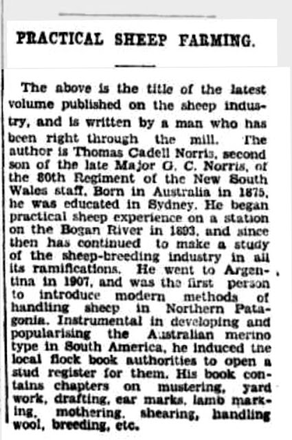Nota del autor [1]: Tom C. Norris, australiano, publicó en su país un muy interesante libro sobre sus experiencias con la producción ovejera en tierras sudamericanas. Edición escasa, poco conocida y de destacada concepción técnica.